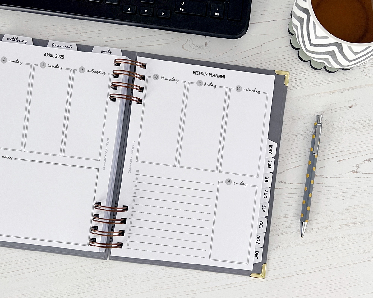 Wire bound planners make a nice compact option. It does mean you forgo the flexibility of a ringbinder, but if you're not concerned with the ability to customise your planner with additional pages, a bound planner is perfect for you.