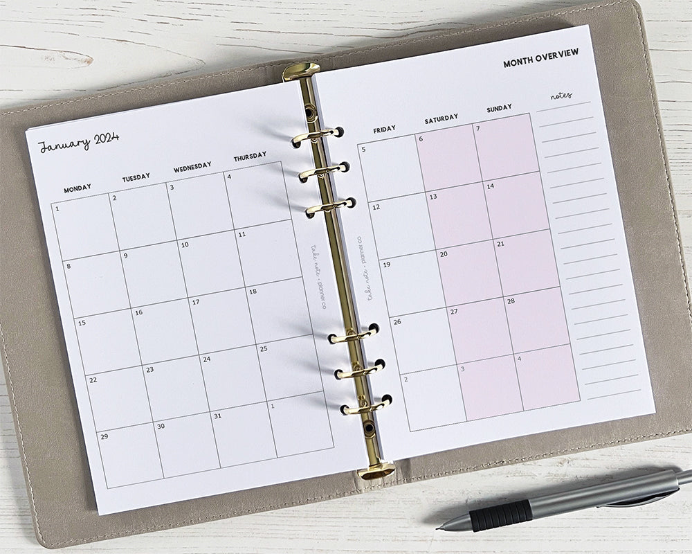 Dated planner inserts are available in two formats; with dashboards or with no dashboards.